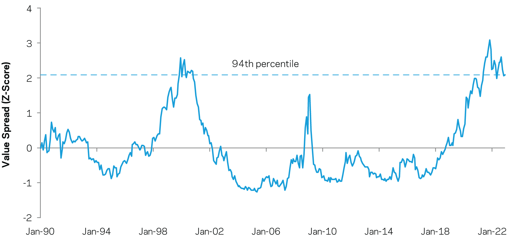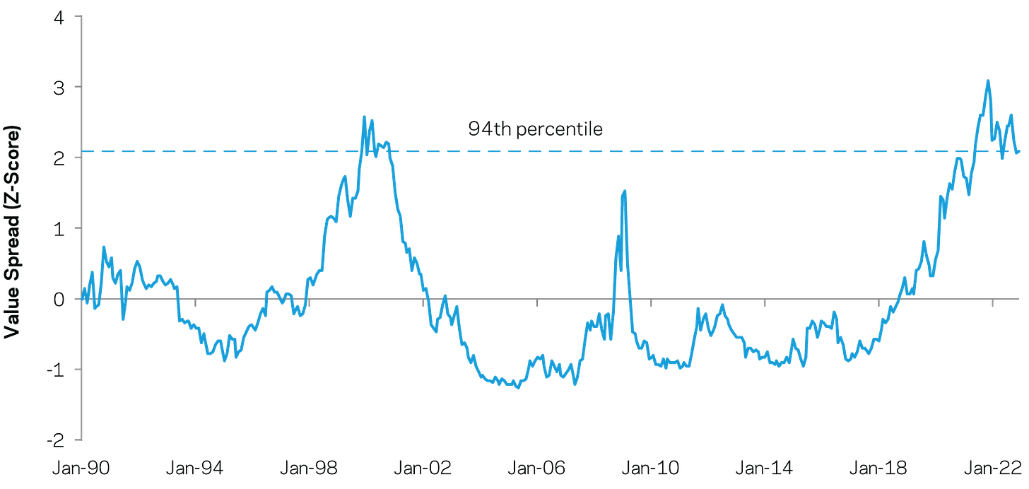 After a good year for value investing, AQR find its “cheapness” has hardly fallen much from the extreme levels it reached in late 2021.