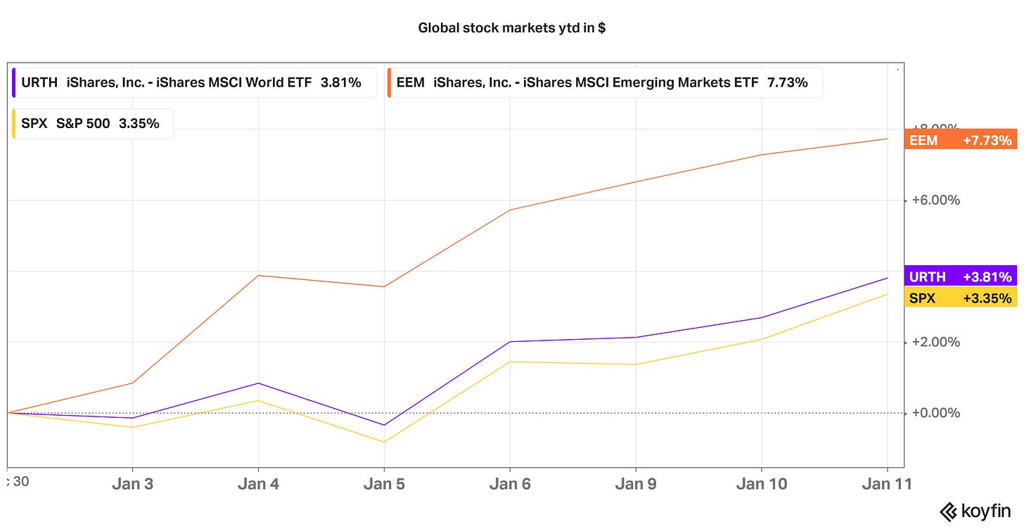Markets have started the year by going up with emerging markets leading the way. Some data out of the US on employment suggested this elusive “soft landing” (wherein inflation falls without causing a major recession) may be possible. I feel like this question is very much defining “the vibe” of the year, expect it to be revisited many times on both sides.
